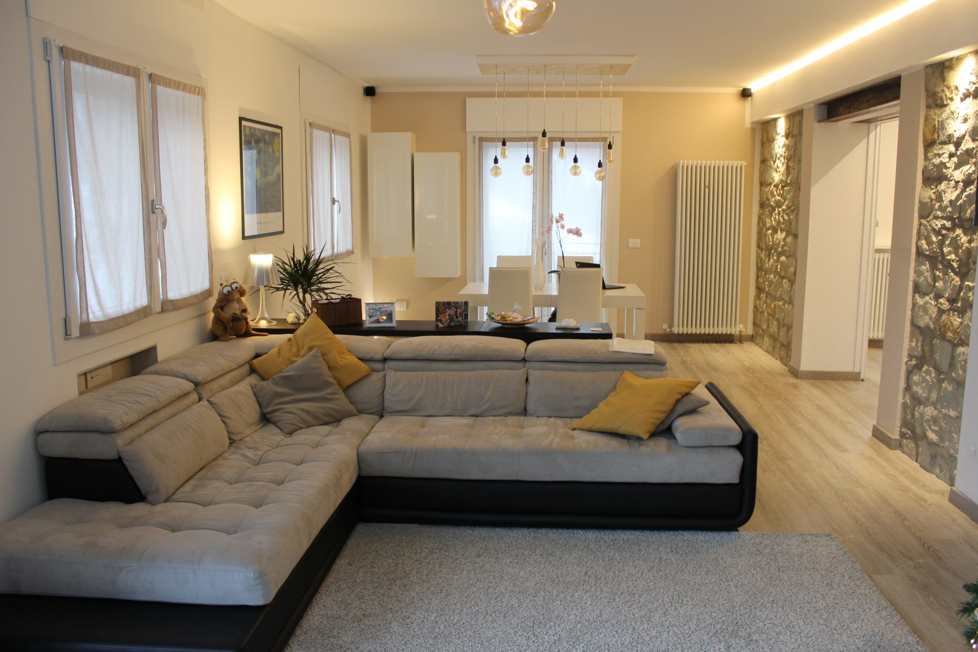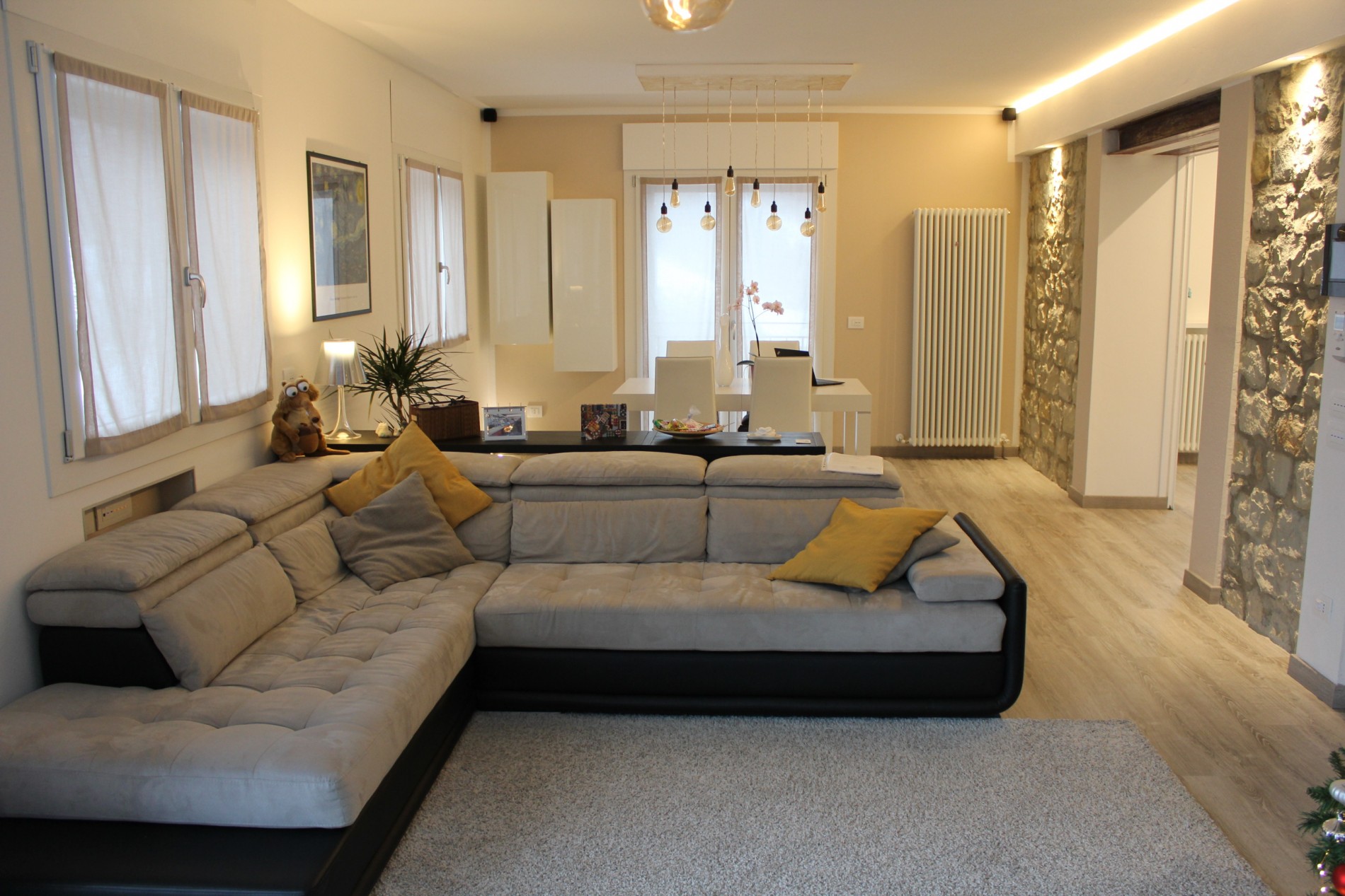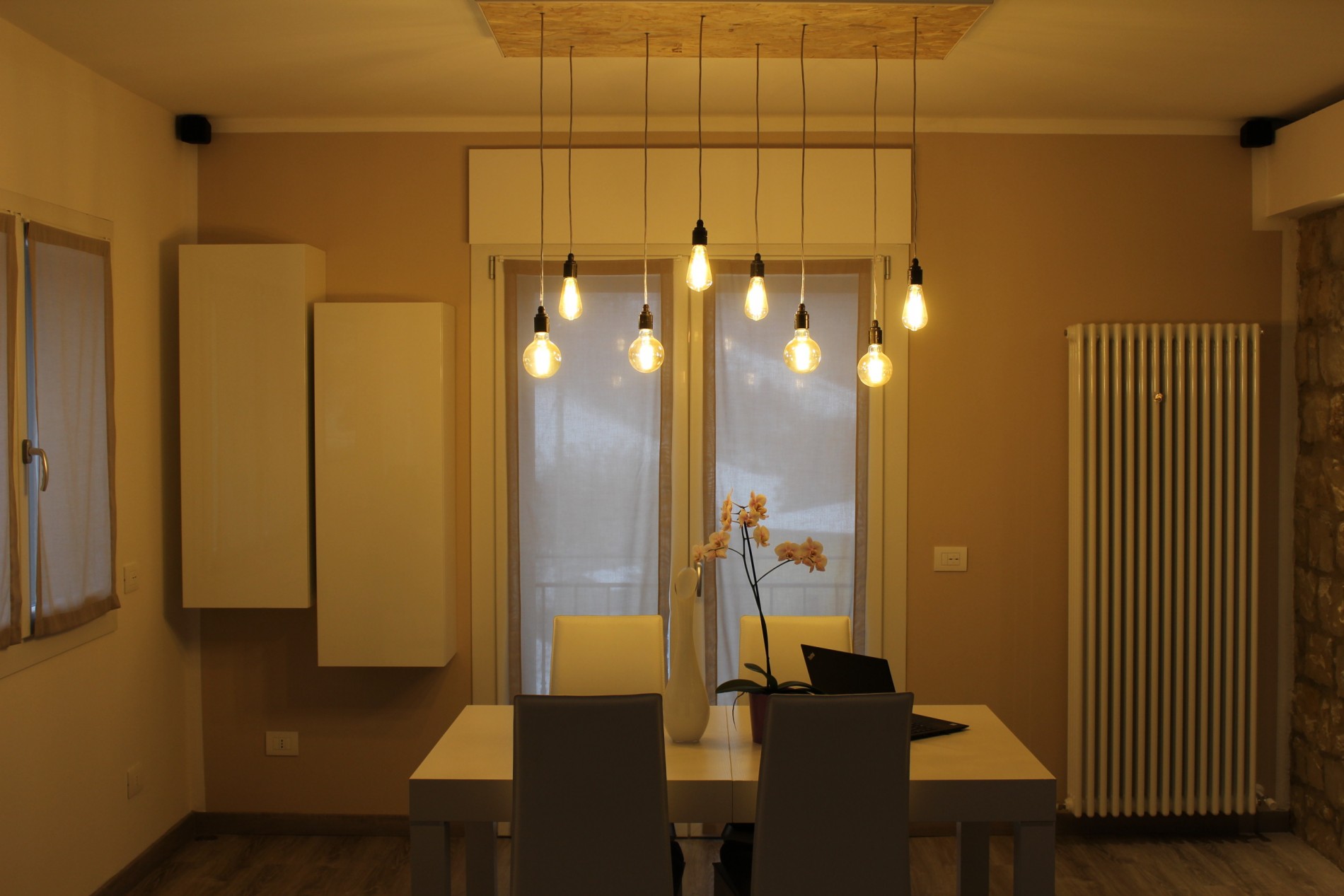 Ristrutturazione di appartamento risalente come primo impianto agli anni cinquanta, sito in centro al paese di Casina. Collocato al secondo piano gode di una invidiabile esposizione solare e di una vista panoramica sul Parco Pineta, infatti dal soggiorno grazie alle ampie finestrature si entra in simbiosi con lo spazio verde prospicente, dialogando direttamente con il paesaggio che “entra” nell’abitazione. L’appartamento, totalmente rinnovato sia sotto il punto di vista distributivo, impiantistico ed energetico, gravava in stato di conservazione scarso poichè non utilizzato da anni. Attualmente risulta funzionale ed elegante. Illuminato e arredato con stile, grazie alla competenza e passione dei proprietari, rappresenta un punto di riferimento per la trasformazione di spazi abitativi del patrimonio esistente.