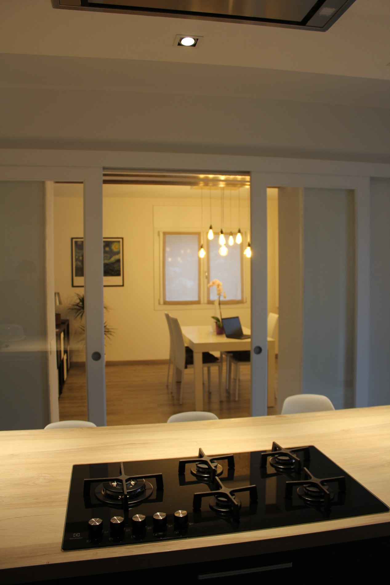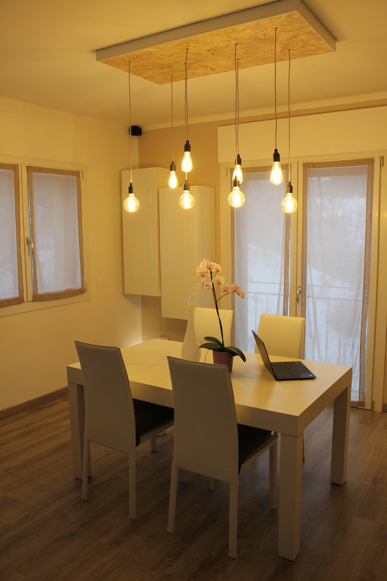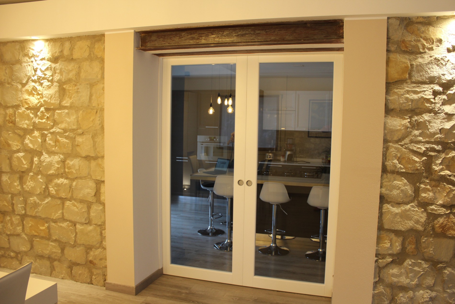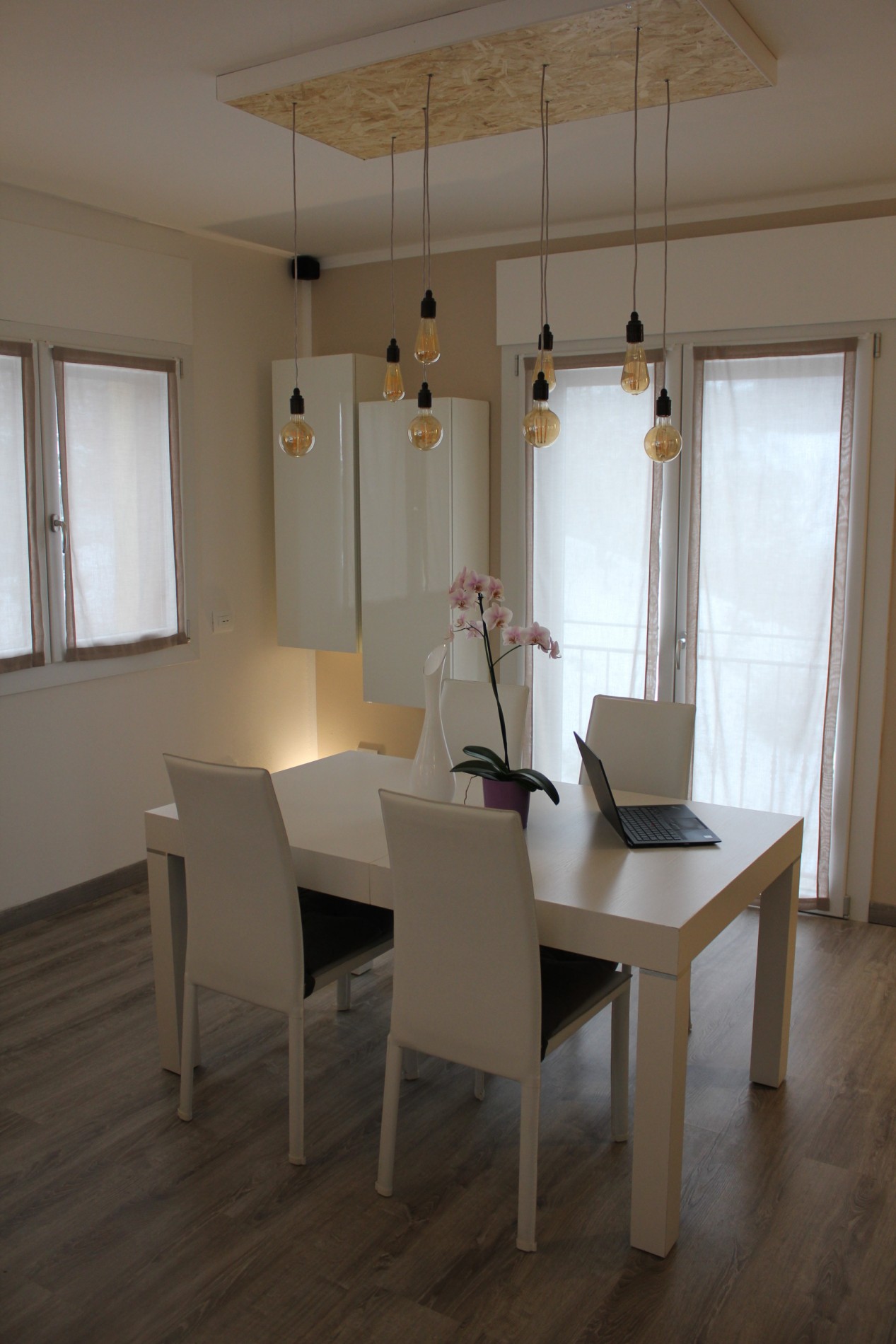Ristrutturazione di appartamento risalente come primo impianto agli anni cinquanta, sito in centro al paese di Casina. Collocato al secondo piano gode di una invidiabile esposizione solare e di una vista panoramica sul Parco Pineta, infatti dal soggiorno grazie alle ampie finestrature si entra in simbiosi con lo spazio verde prospicente, dialogando direttamente con il paesaggio che “entra” nell’abitazione. L’appartamento, totalmente rinnovato sia sotto il punto di vista distributivo, impiantistico ed energetico, gravava in stato di conservazione scarso poichè non utilizzato da anni. Attualmente risulta funzionale ed elegante. Illuminato e arredato con stile, grazie alla competenza e passione dei proprietari, rappresenta un punto di riferimento per la trasformazione di spazi abitativi del patrimonio esistente.