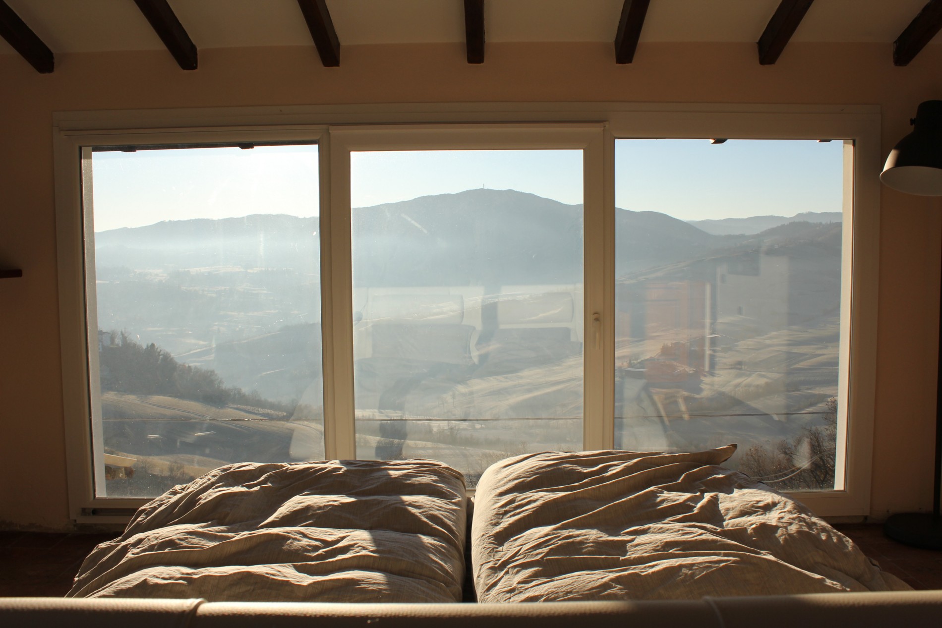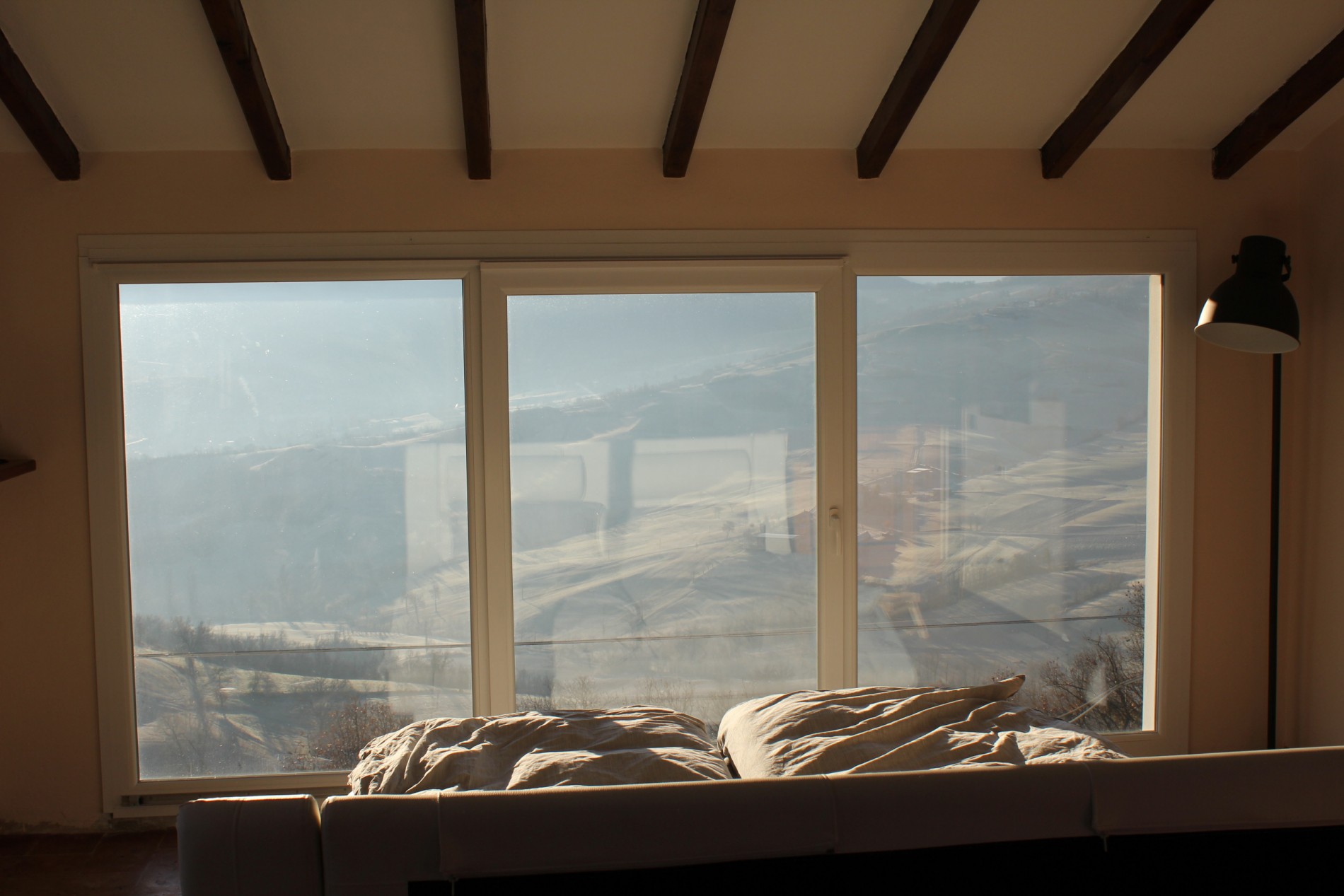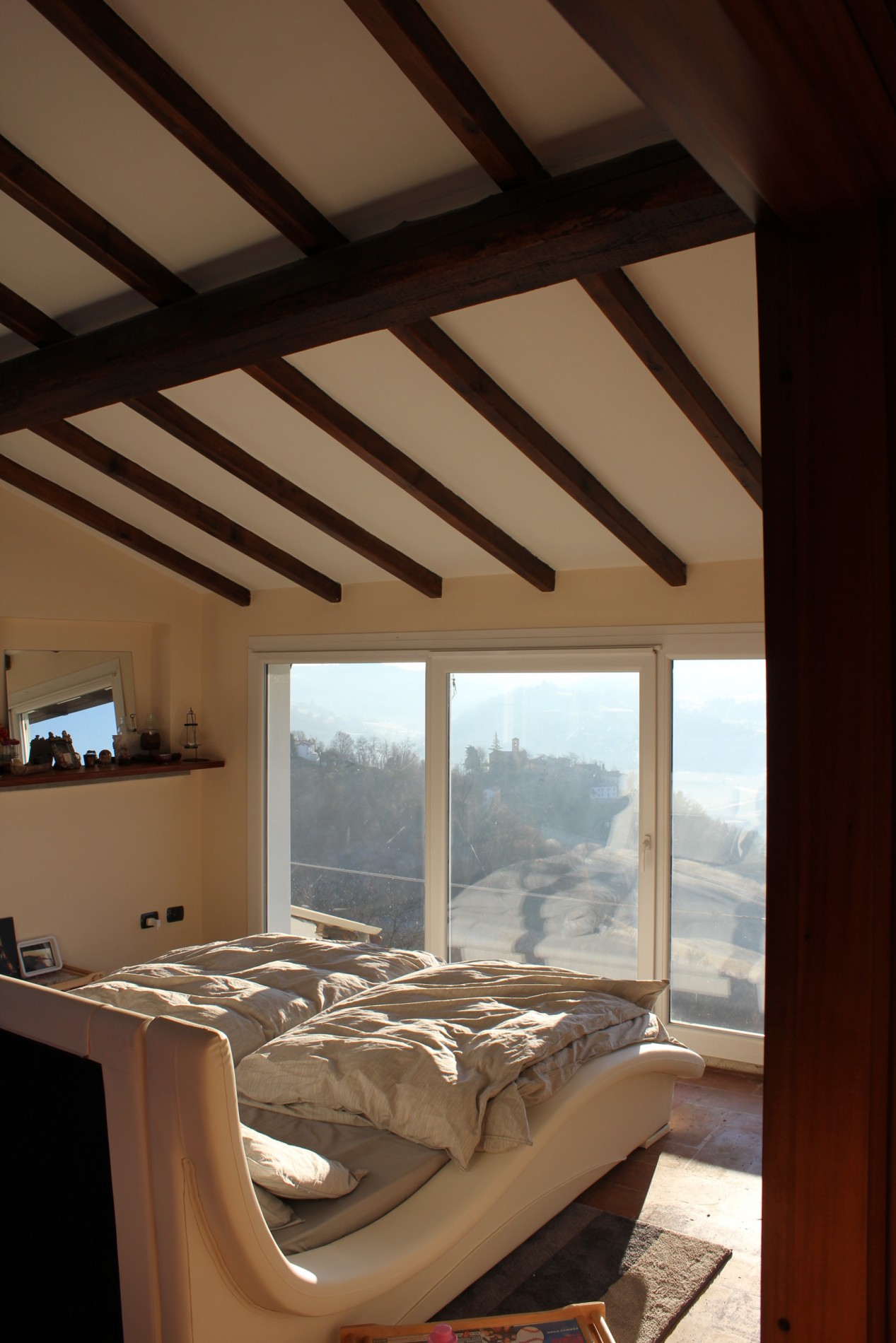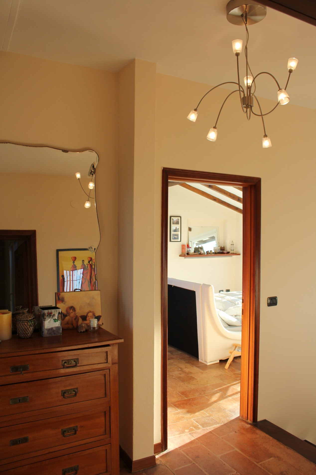 Ristrutturazione di abitazione posta sullo spartiacque tra due stupende vallate del primo Appennino Reggiano, val Crostolo e val Campola. Rinnovata negli impianti, serramenti e arredi, attualmente si presenta accogliente e molto personale, da ogni vano si può godere di una vista sul paesaggio. In particolare dalla camera al Piano Primo grazie alla ampia finestratura a tutta parete si ottiene un effetto di “volo” sulla vallata, un quadro che muta continuamente ad ogni cambio di luce e che rende questa camera unica, con letto posto a centro stanza. L’abitazione molto spaziosa è dotata di ogni comfort e vari bassi servizi, incluso una cantina seminterrata in sasso con volte in laterizio ben conservate.