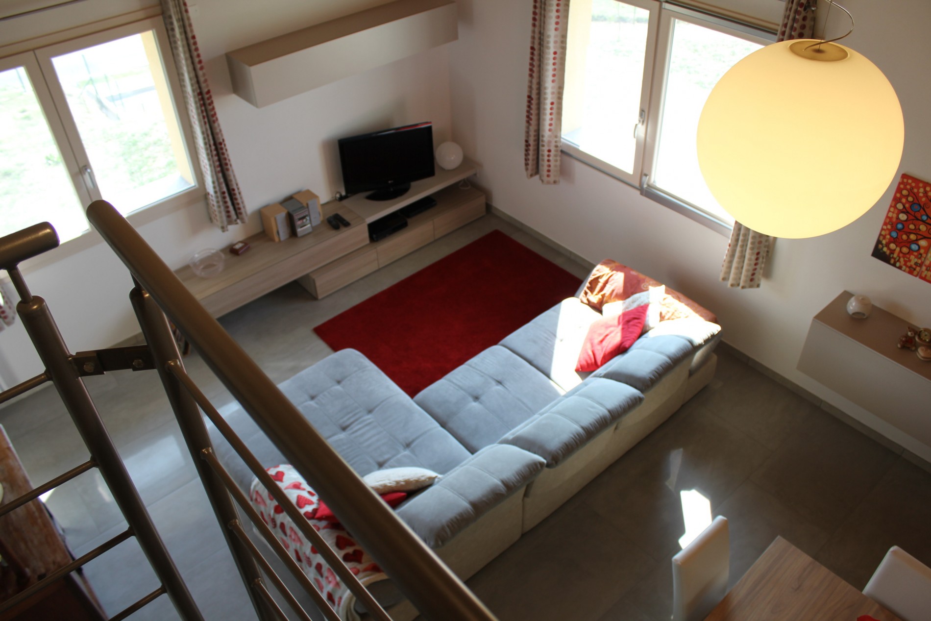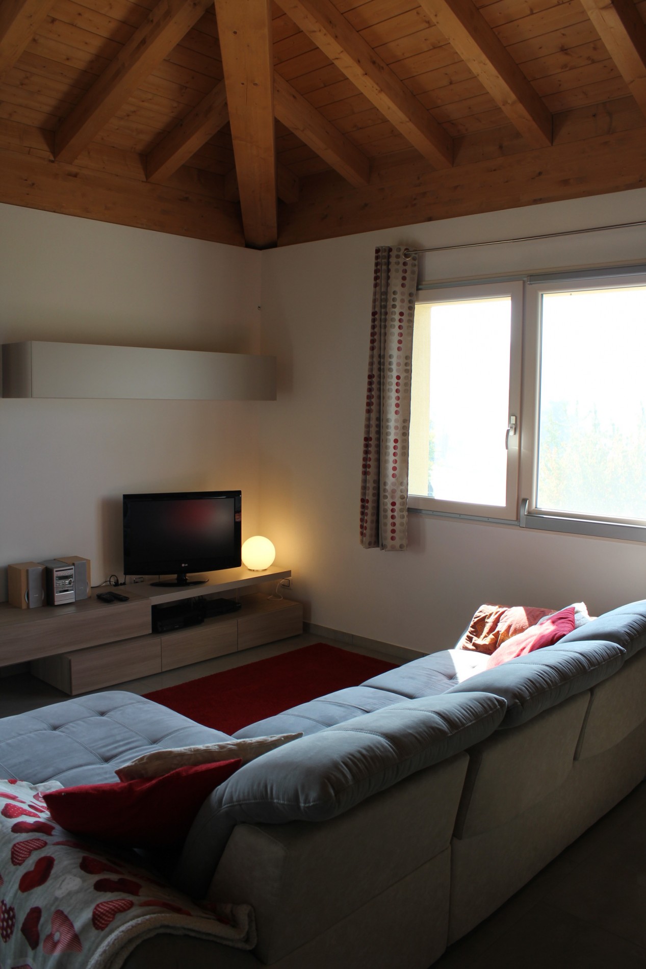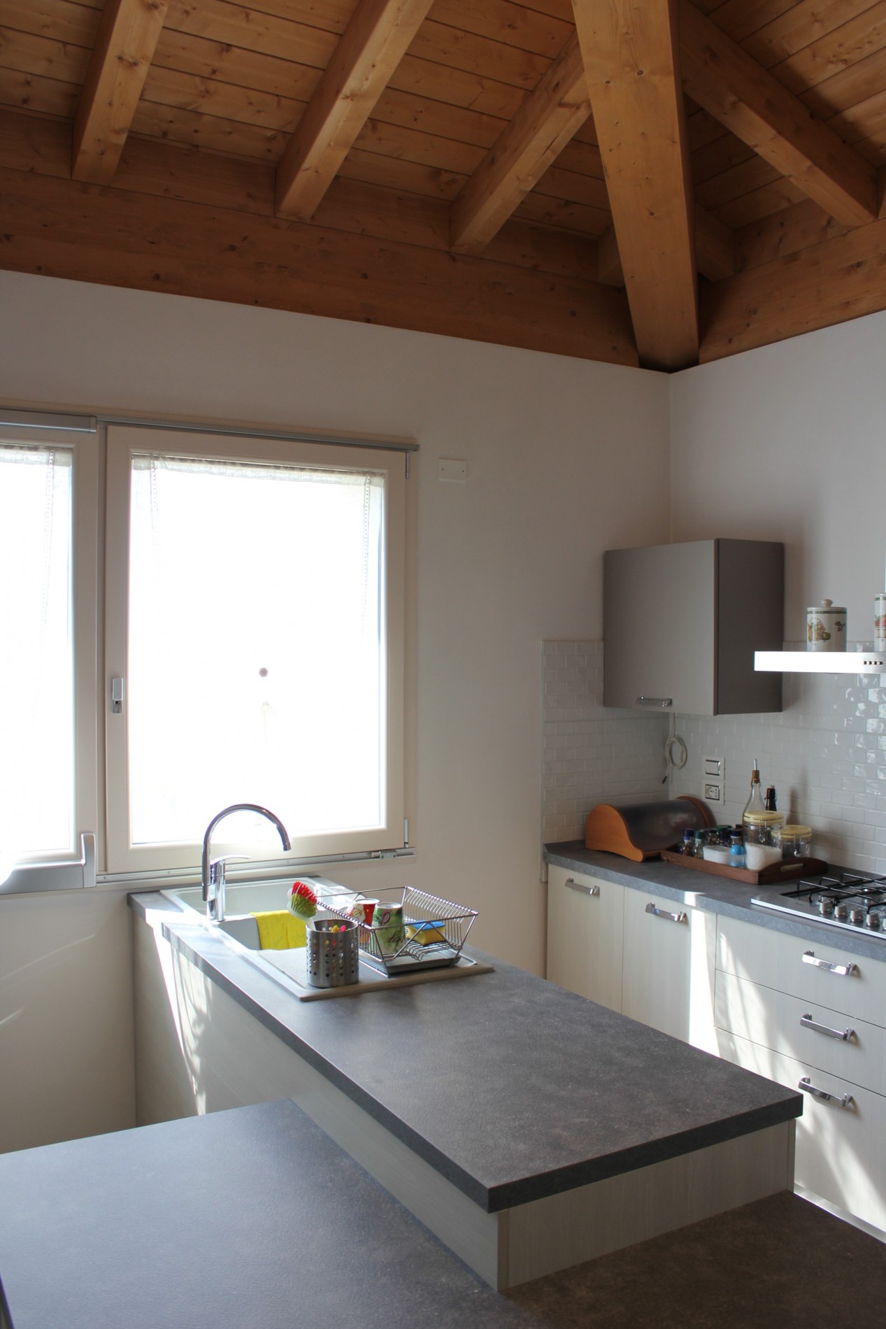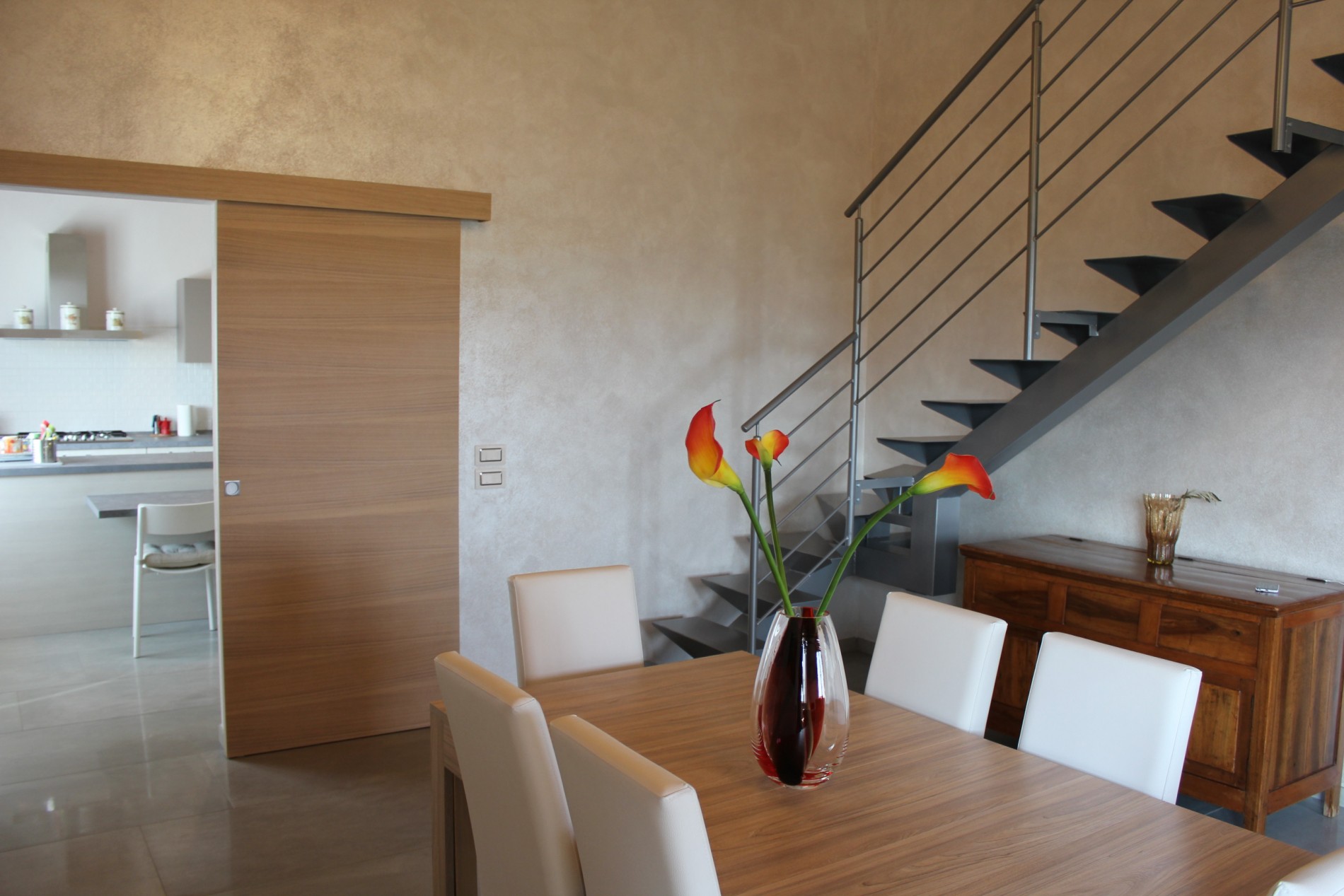 ad eccezione di un sottotetto di servizio al piano mansardato, risulta priva di barriere architettoniche. Dalla scala di accesso al sottotetto si gode la visione del soggiorno, fulcro dell’abitazione. Le ampie finestrature rendono luminosi gli spazi interni e garantiscono viste panoramiche sull’ambiente naturale circostante.